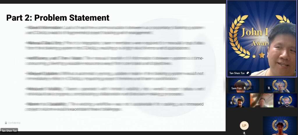 John Lim Award 2024: Celebrating New Innovations in Software EngineeringOn the 5th of April, JurisTech was thrilled to announce the winner for this year’s John Lim Award 2024 for celebrating extraordinary achievements in the innovation of technology. The award, which carries a winning prize of RM 2,000, underscores JurisTech’s commitment to recognising excellence in software engineering within our organisation and our affiliated company, iMoney. Moreover, this annual award not only provides software engineers (SEs) with well-deserved recognition but also instils a profound sense of fulfilment. Aligned with JurisTech’s core values (GECO values), the award remains committed to seeking out and inspiring talented engineers, providing them with platforms to showcase their groundbreaking innovations and recognising their exceptional accomplishments.From left: John Lim, Hosein Abedinpourshotorban, Kiarash RazaghiAval and Sam Foo This year’s panel of judges, comprising esteemed leaders such as John Lim, Chief Technology Officer (CTO), Hosein Abedinpourshotorban, Chief Innovation Officer (CINO), Kiarash RazaghiAval, Chief Information Officer (CIO), and Sam Foo Chee Sum, Deputy CIO, undertook a rigorous evaluation process to identify the project that best exemplified technical innovation and its impact on our company and customers.Tan Shen Zhe Tan Shen Zhe emerged as this year’s award recipient, celebrated for his groundbreaking contributions that have propelled JurisTech to new heights. Shen’s innovative approach to workflow optimisation, particularly his acceleration of the ClickUp card creation process, has significantly enhanced our overall response efficiency. His achievement, particularly noteworthy as he has self-taught software engineering in addition to his role as a Business Analyst, serves as an inspiring example to aspiring innovators within JurisTech and iMoney.Tan Shen Zhe virtually presenting the problem statements to the judges. Previously, the manual review of tickets generated by our ticketing system and the creation of corresponding ClickUp cards by JurisTech’s Business Analysts were necessary. Shen’s implementation has streamlined this process, reducing wait times for SEs and idle time between ticket receipt and ClickUp card creation. This optimisation has not only enhanced overall response efficiency but also allowed product teams to allocate more time to strategic Business Unit activities, thereby improving accuracy and reliability in managing and responding to customer tickets. From left: Abirukmani Venkatachalam, Mohamad Anwar Bin Kollacheri Ebrahim Kutty and Ng Lik Sern In addition to the winner, the judges also recognised two honorable mentions: Abirukmani Venkatachalam for her BoM Configurator, which streamlines the process of creating bill of materials for infrastructure proposals, and Mohamad Anwar Bin Kollacheri Ebrahim Kutty and Ng Lik Sern for their One Page Account Debugger, which centralises key information for account case identification numbers onto one screen, facilitating easy debugging and expediting client support.The shortlisted candidates presenting their project to the esteemed judges.As we celebrate the accomplishments of Tan Shen Zhe and our honorable mentions, we are reminded of the endless possibilities that arise when passion and dedication intersect with opportunity. As we look to the future, let us continue to embrace the spirit of innovation, pushing boundaries, and inspiring each other to reach new heights of excellence. Congratulations to all the recipients, and here’s to many more groundbreaking achievements in the coming years.JurisTech is a leading fintech company, specialising in enterprise-class software solutions for banks, financial institutions, telecommunications, and automobile companies globally.We power economies by reimagining financial services with cutting-edge software solutions, which includes artificial intelligence (AI), auto-decisioning, digital customer onboarding, loan origination, credit scoring, loan documentation, litigation, and debt collection. Our solutions have enabled businesses across a broad array of industries to undergo digital transformation, providing enhanced customer experiences and, most importantly, achieving their business goals.By JurisTech|2024-04-19T14:20:05+08:0017th April, 2024|Awards, News| About the Author: JurisTech The Marketing & Communications team at JurisTech comprises skilled digital marketing strategists and content creators who deliver invaluable insights drawn from our experts in lending and recovery software solutions. For media queries, please contact us at mac@juristech.net. Related Posts Alliance Bank Goes Live with AI-Enabled Loan Origination System from CTOS and JurisTech 18th November, 2025 JurisTech Hosts Industrial Visit from Universiti Teknologi PETRONAS 24th September, 2025 Bridging the Trust Gap with AI: JurisTech Champions Financial Inclusion at CIBI IMPACT 2025 21st August, 2025